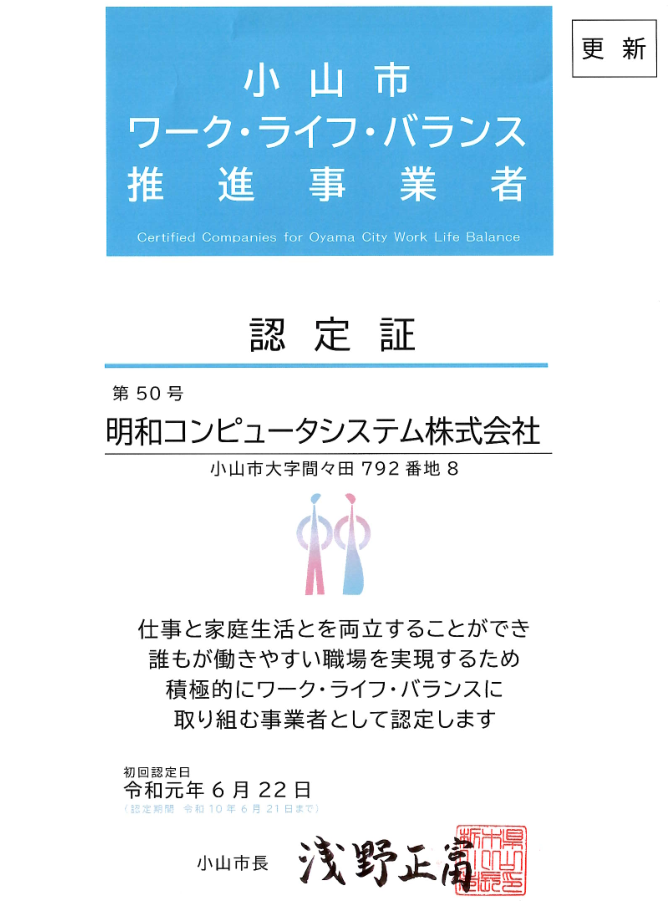 ワークライフバランス推進事業所認定 更新